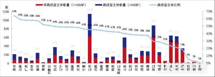 图4 贵州、云南地区内部高收益主体比例最高,风险更为集中