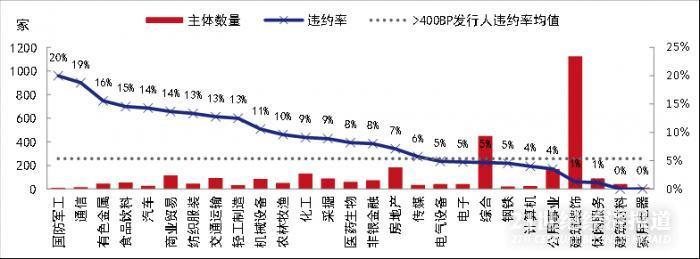 同时,考虑到目前我国高收益债研究中,大多数研究机构的高收益债样本占整体信用债的比例在10%~25%之间,因而为了贴合国内高收益债研究,给国内高收益债投资者更多参考,本文一并统计发行利差>400BP、>500BP和>600BP三类高收益债主体的分布和违约情况。
