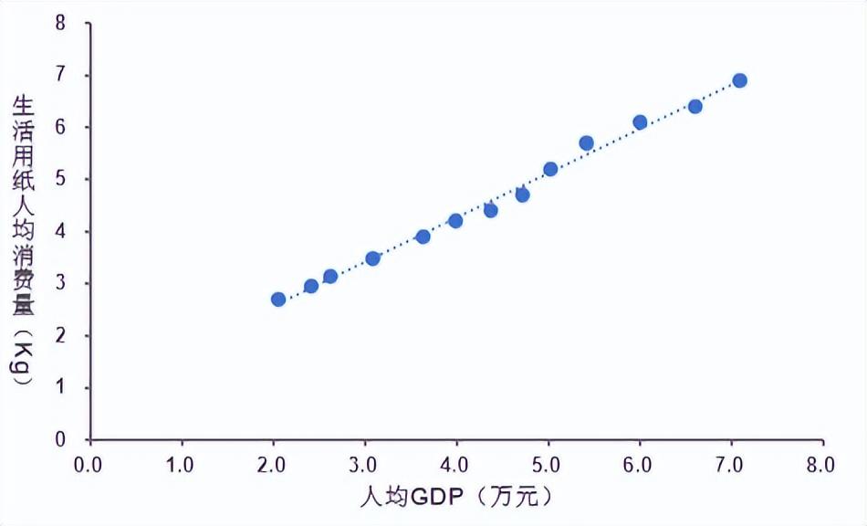 你看我国的用纸量跟GDP是正相关的,也就是随着生活水平的提高,用纸量是一直在增长的。