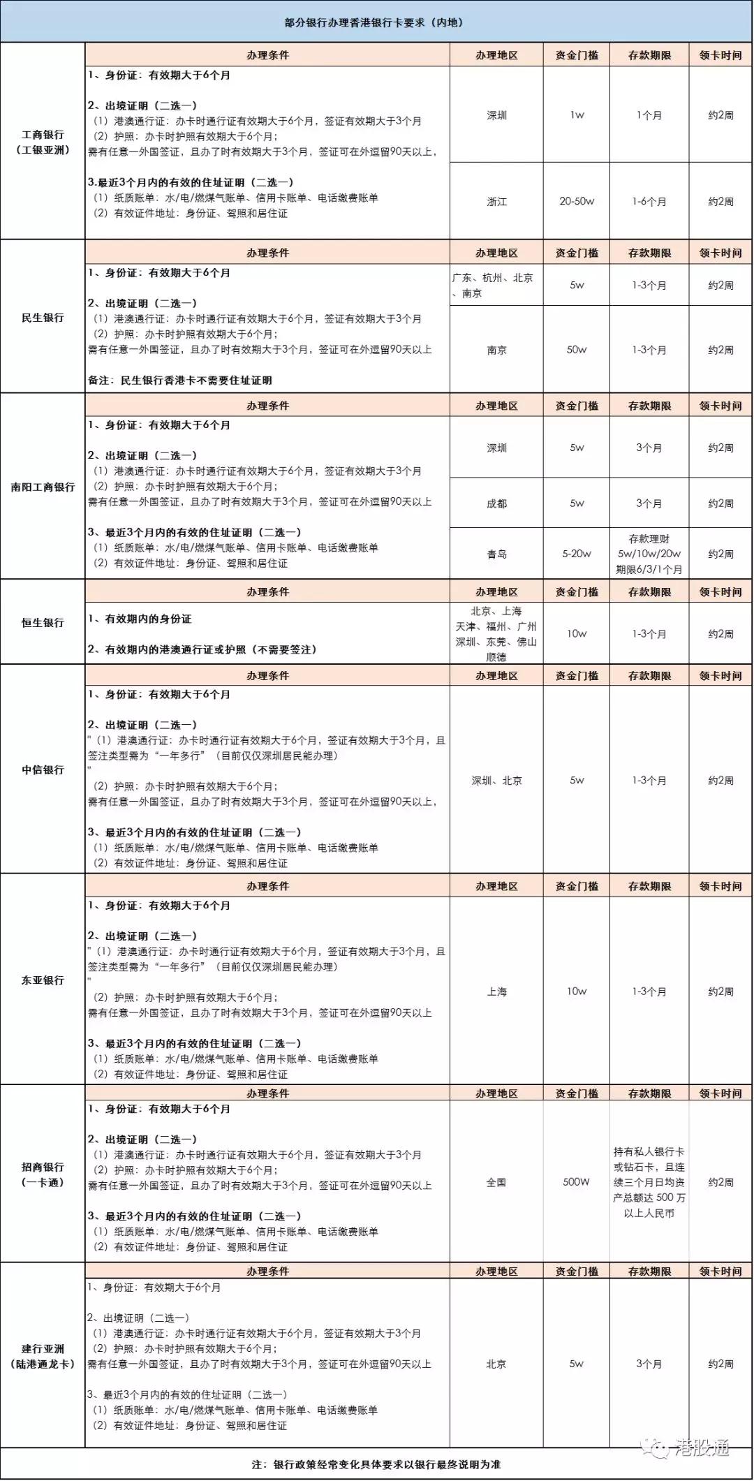 相较于在大陆的网点开通香港银行卡,直接前往香港开通香港银行卡基本所有的银行都可以开: