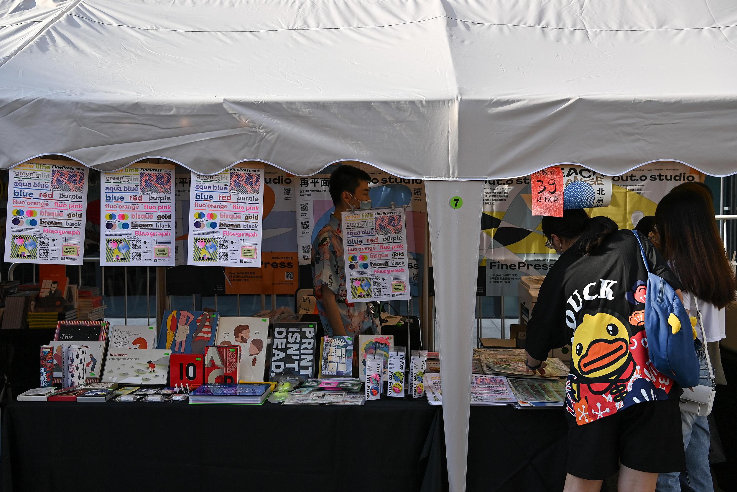 前来摆摊的商户包括中信、阅文、后浪等出版社,也有Page One这样的书店,以及独立的设计出版工作室。“由于疫情的关系,许多实体书店也遭到了冲击,而且不像餐饮行业恢复得比较快,我们希望用市集的方式给大家带来跟消费者面对面的沟通并且真切地带来销售。”此次市集的运营方伍德吃托克的联合创始人边忭告诉界面新闻。