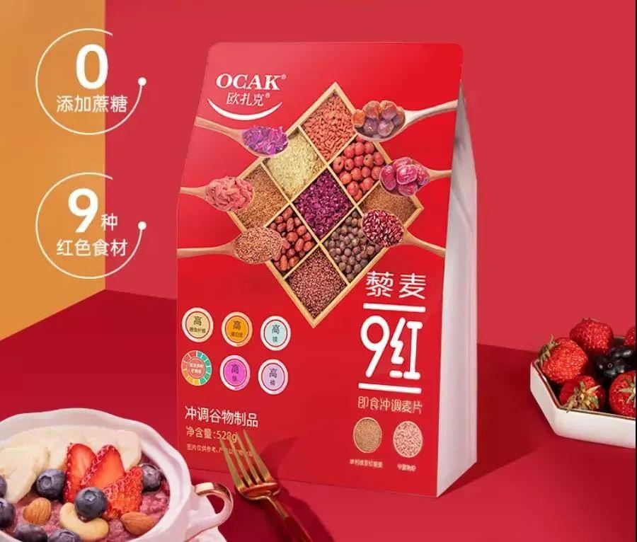 近日,欧扎克推出藜麦9红麦片新品,选取桂圆、红枣、红豆、枸杞、红米、红藜麦、山楂、重瓣红玫瑰、红甜菜根等九种食材。据悉,这款产品含5大营养素,蛋白质、膳食纤维,还含有铁、磷、镁等多种矿物质,每餐热量112kal/33g,小于一个苹果。目前,该产品已上线天猫欧扎克旗舰店。